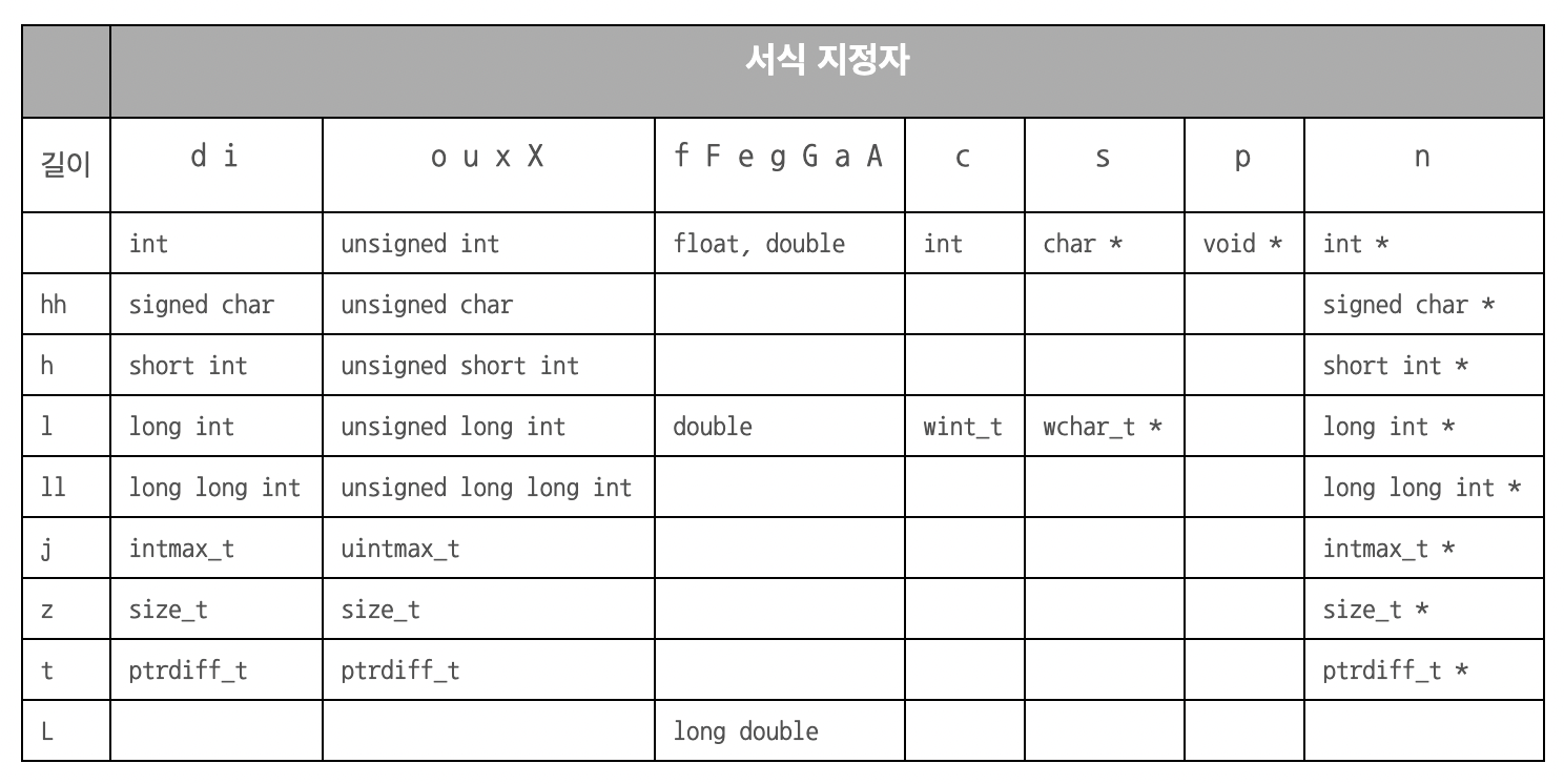 이 함수는 출력할 데이터를 어떤 서식에 맞춰 출력할지 서식 지정자(format specifier)를 통해 직접 지정할 수 있다.