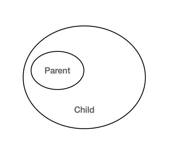 자식 클래스는 부모 클래스의 멤버들을 상속 받게 되어 자식클래스는 부모 클래스를 포함하는 형태가 된다.