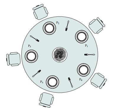 철학자들의 만찬문제는 n명의 철학자가 원형 테이블에 앉아있으며 양쪽에는 포크가 놓여져 있고 테이블의 중간에는 음식이 있다.